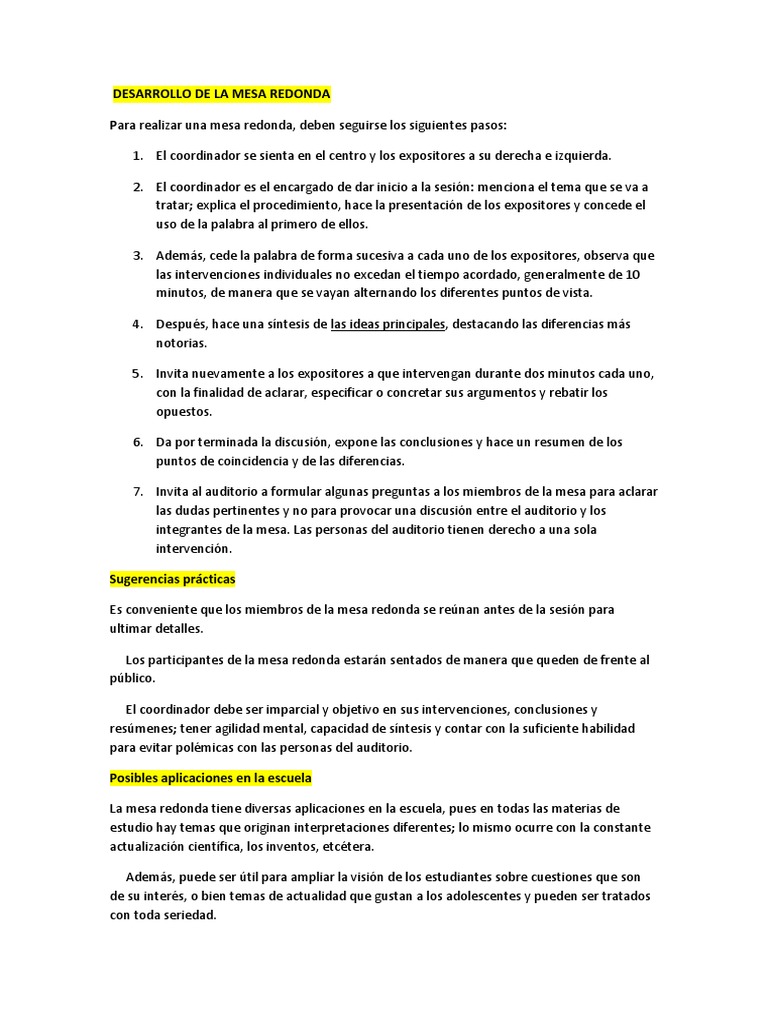 CARACTERISTICAS DE LA MESA REDONDA Docsity