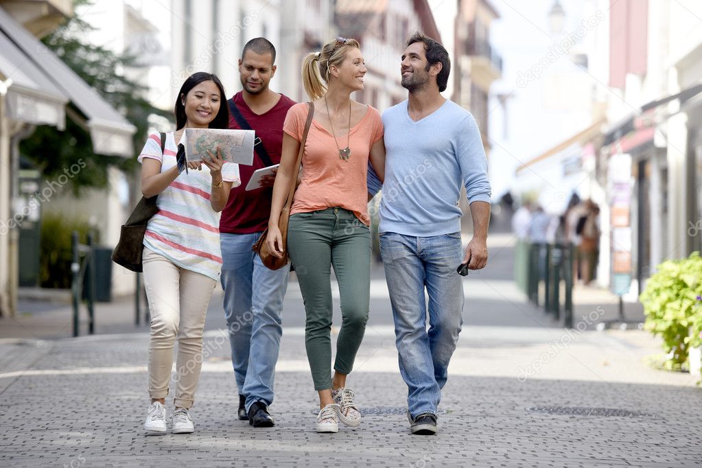 People on vacation walking on city street — Stock Photo © Goodluz 126647228