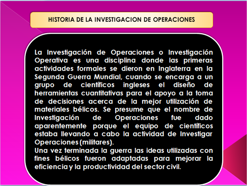 INVESTIGACION DE OPERACIONES I HISTORIA DE INVESTIGACION DE OPERACIONES...!
