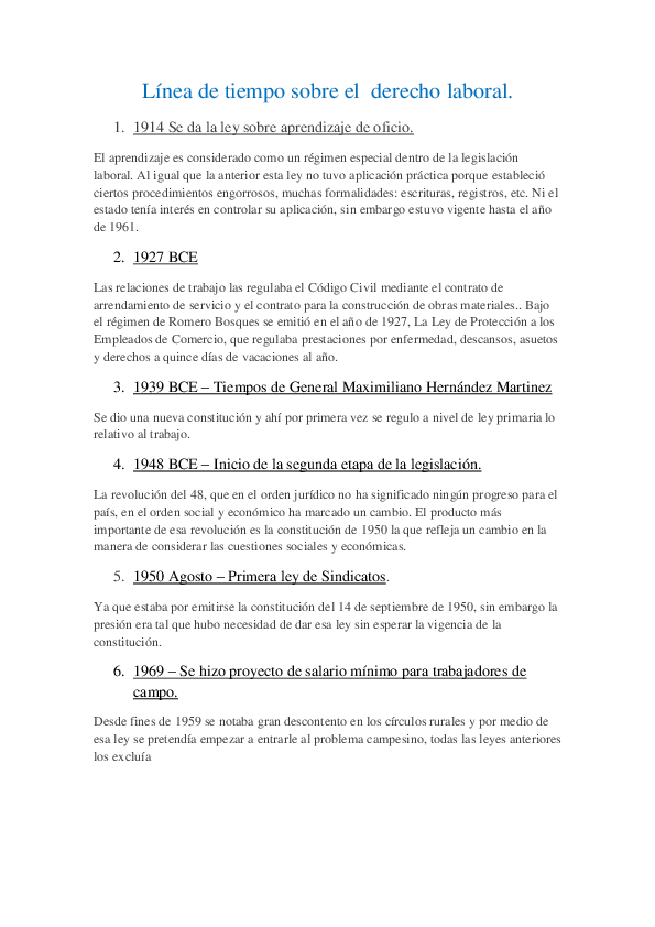 Antecedentes del derecho laboral linea del Tiempo Ejercicios de Derecho Laboral Docsity