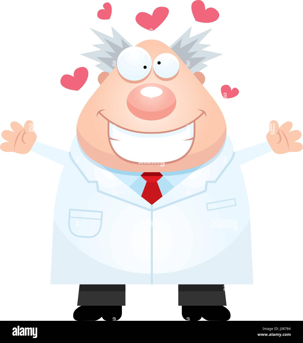 Ilustración de una caricatura de un científico loco, dispuestos a dar un abrazo Imagen Vector de