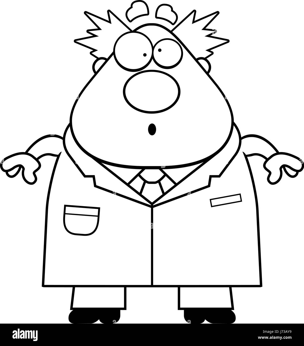 Ilustración de una caricatura de un científico loco mirando sorprendido Imagen Vector de stock
