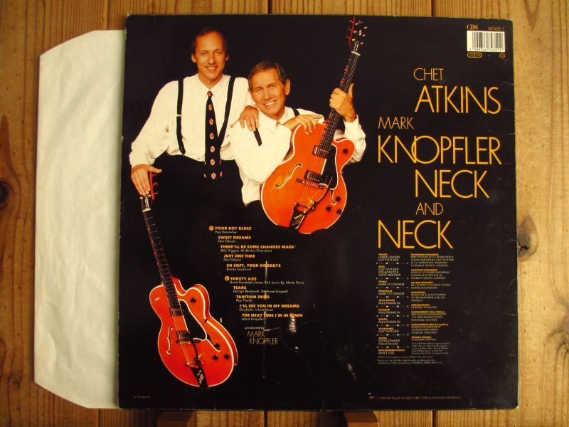 Neck and Neck is a collaborative album by American guitarist Chet Atkins and British singer-songwriter and guitarist Mark Knopfler, released on October 9, 1990. Track List: 1. Poor Boy Blues 2. Sweet Dreams 3. There'll Be Some Changes Made 4. Just One Time 5. So Soft, Your Goodbye 6. Yakety Axe 7. Tears 8. Tahitian Skies 9. I'll See You in My.