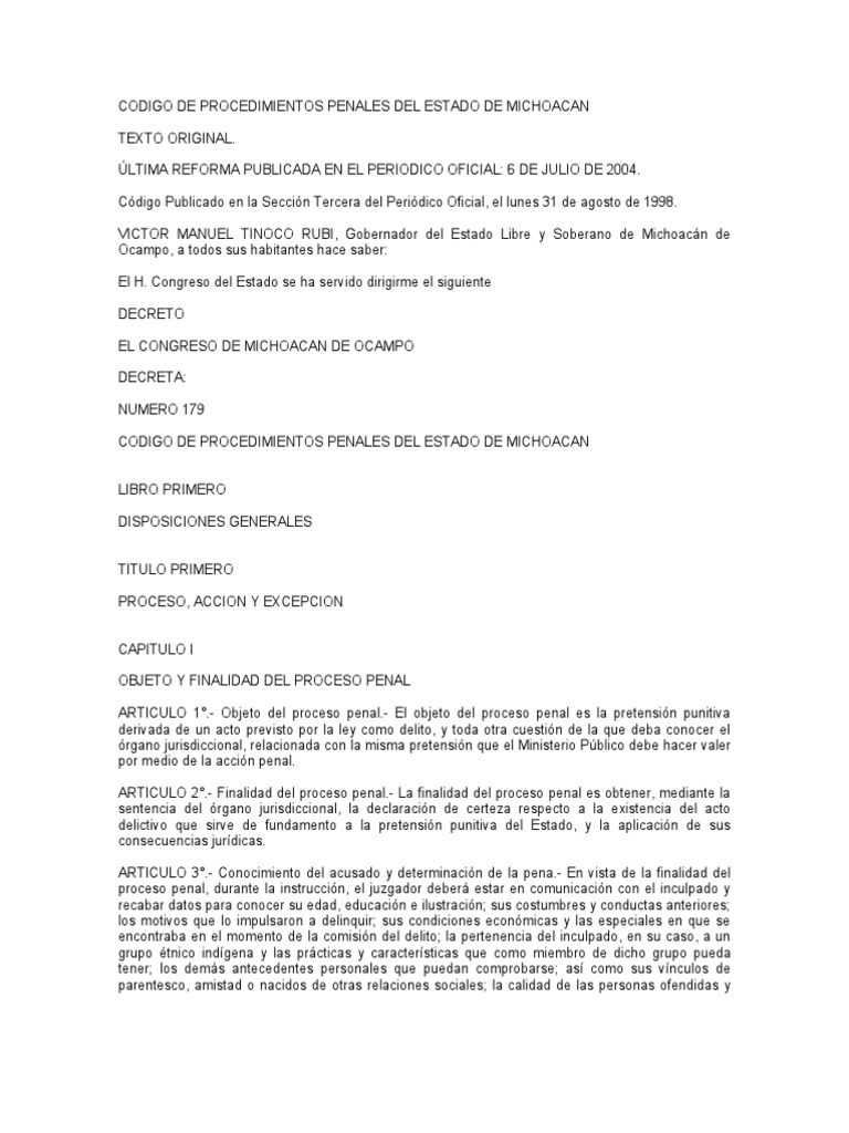 Codigo De Procedimientos Penales Del Estado De Michoacan. Descarga el documento en version PDF. © 2024 Justia Justia Connect Legal Portal Company Help Terms of.