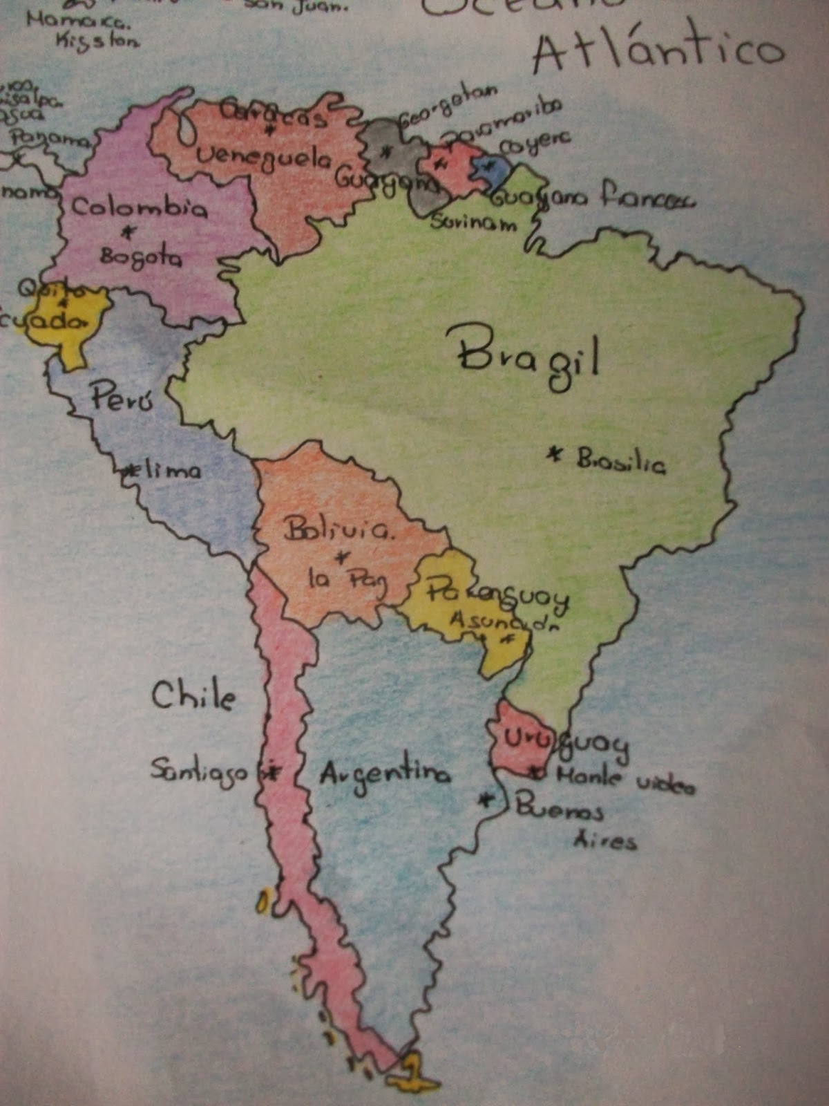Mapa de paises sudamericanos Diagrama con etiquetas