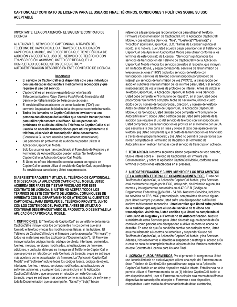 captioncall® contrato de licencia para el usuario final