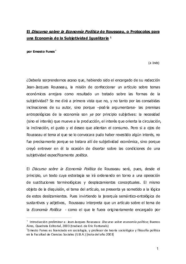 (PDF) Rousseau_Discurso sobre Economía Política_Estudio Preliminar_2003 Ernesto Funes