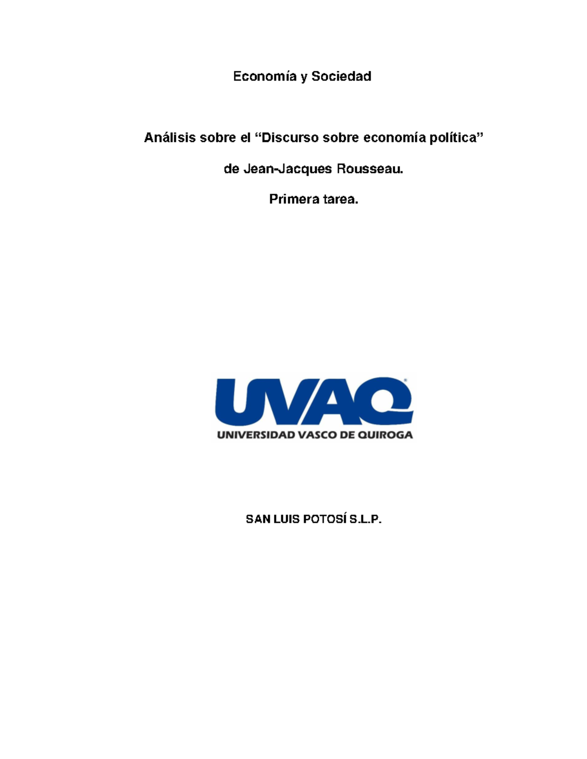 Análisis sobre el “Discurso sobre economía política” UVAQ Economía y Sociedad Análisis sobre