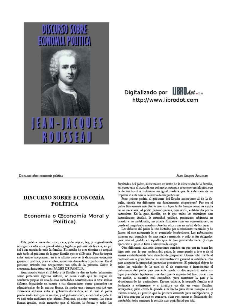 Rousseau | PDF. Discurso Sobre La Economía Política. Rousseau by entronator.