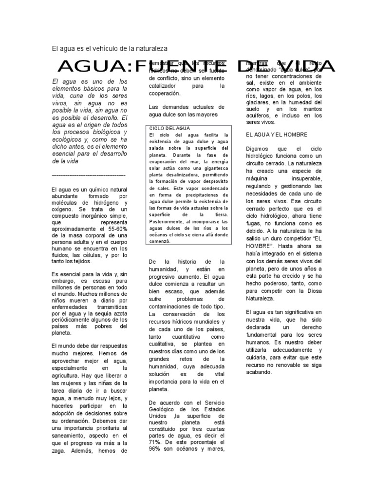 92287189 Articulo Periodistico Del Agua 1 Agua dulce El ciclo del agua