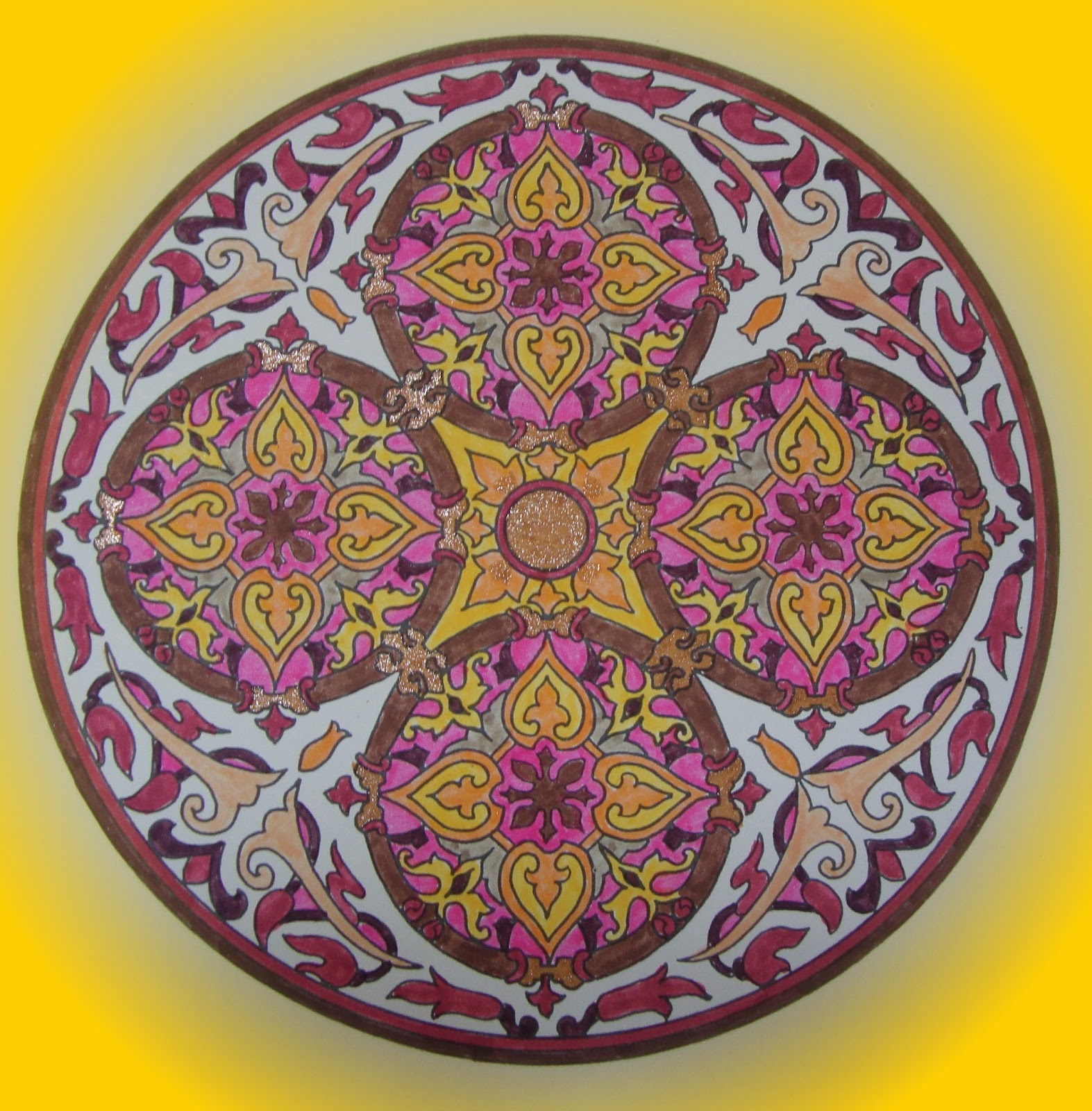 Mandala hindú creativa: considerado uno de los más famosos de la cultura hindú: el Sri Yantra o Yantra supremo también llamado la rueda de Dios Madre es una composición resumida de la concepción divina de la mujer: caracterizada porque posee 9 triángulos yuxtapuestos y 44 triángulos más pequeños en el centro esta posición fue dictada por Shiva.