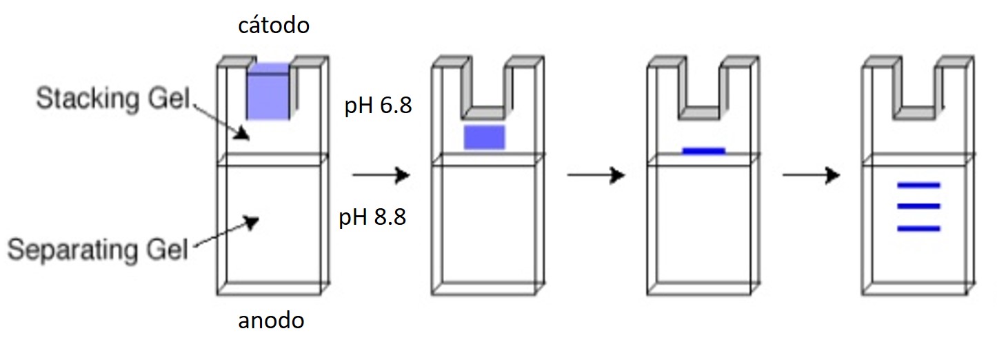 La electroforesis en gel de poliacrilamida con dodecilsulfato de sodio (SDS-PAGE) es un método de separación de moléculas basado en la diferencia de su peso molecular. Al pH al que se lleva a cabo la electroforesis en gel, las moléculas de SDS tienen carga negativa y se unen a las proteínas en una proporción establecida, aproximadamente.