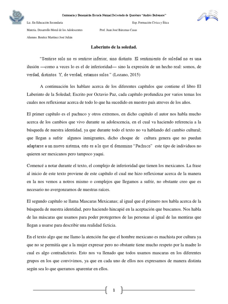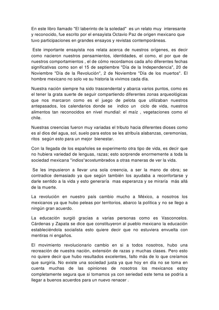 ENSAYO DE OCTAVIO PAZ EL LABERINTO DE LA SOLEDAD