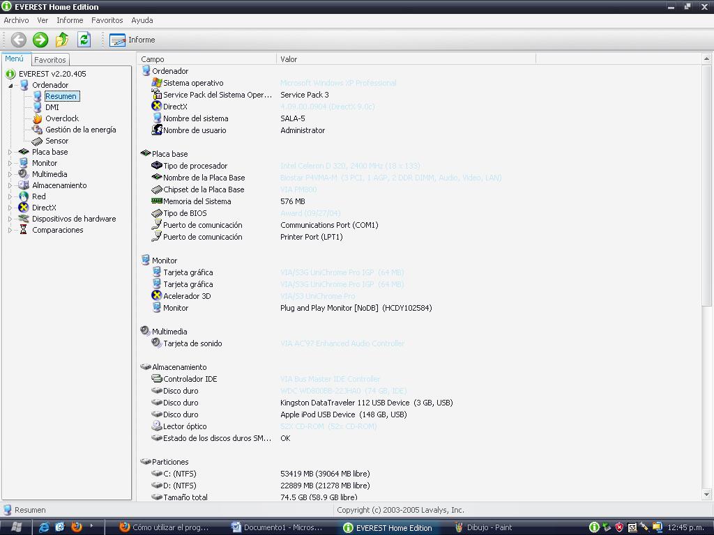 Es una poderosa herramienta de diagnóstico que le ofrecerá 100 páginas de información acerca de su PC.. Información sobre el programa Antivirus y los detalles acerca de la base de datos de virus. Funciones de diagnostico: Panel CPUID: EVEREST CPUID panel proporciona información detallada sobre el procesador, placa base, memoria RAM y.