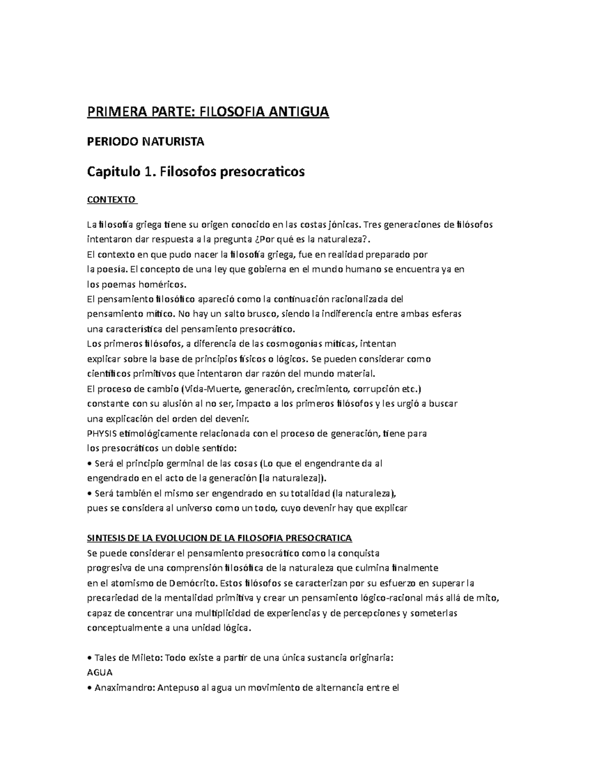 Resumen Historia de la Filosofía Antigua y Medieval primera parte y segundo parte PRIMERA