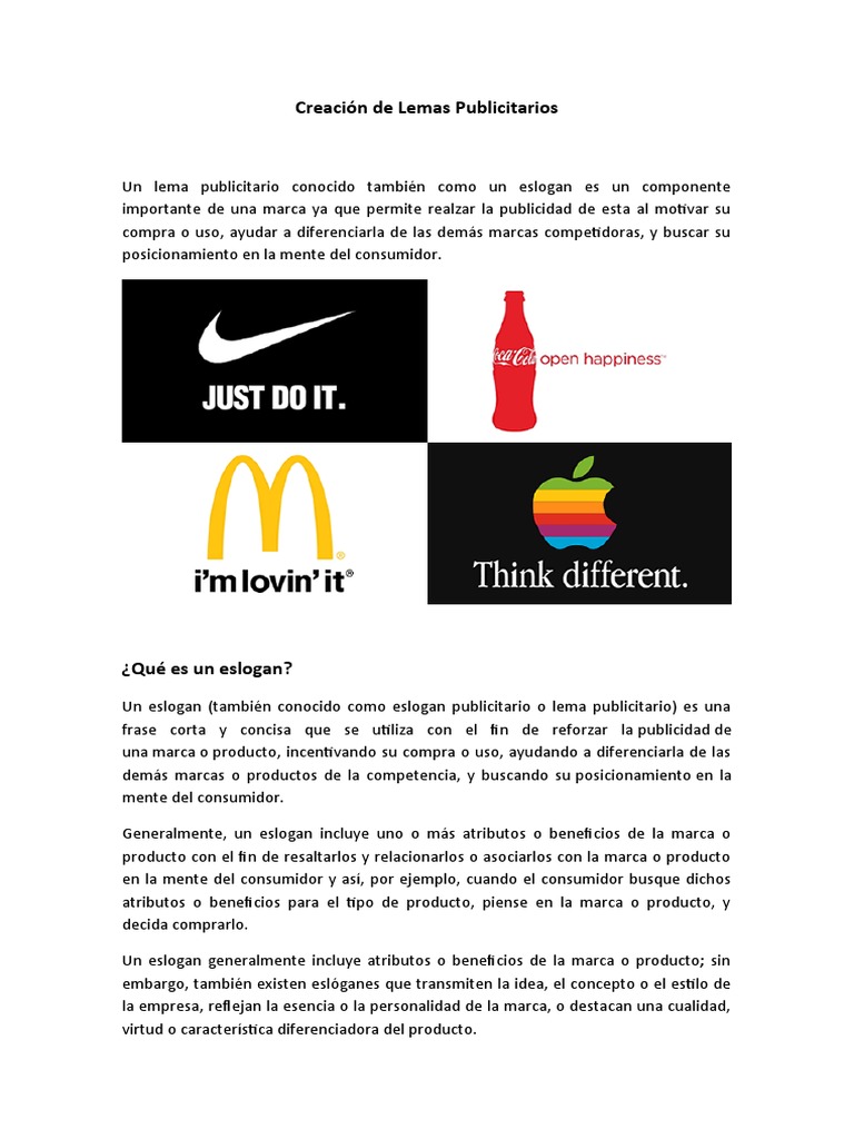 Creación de Lemas Publicitarios PDF Marca Producto (Negocio)