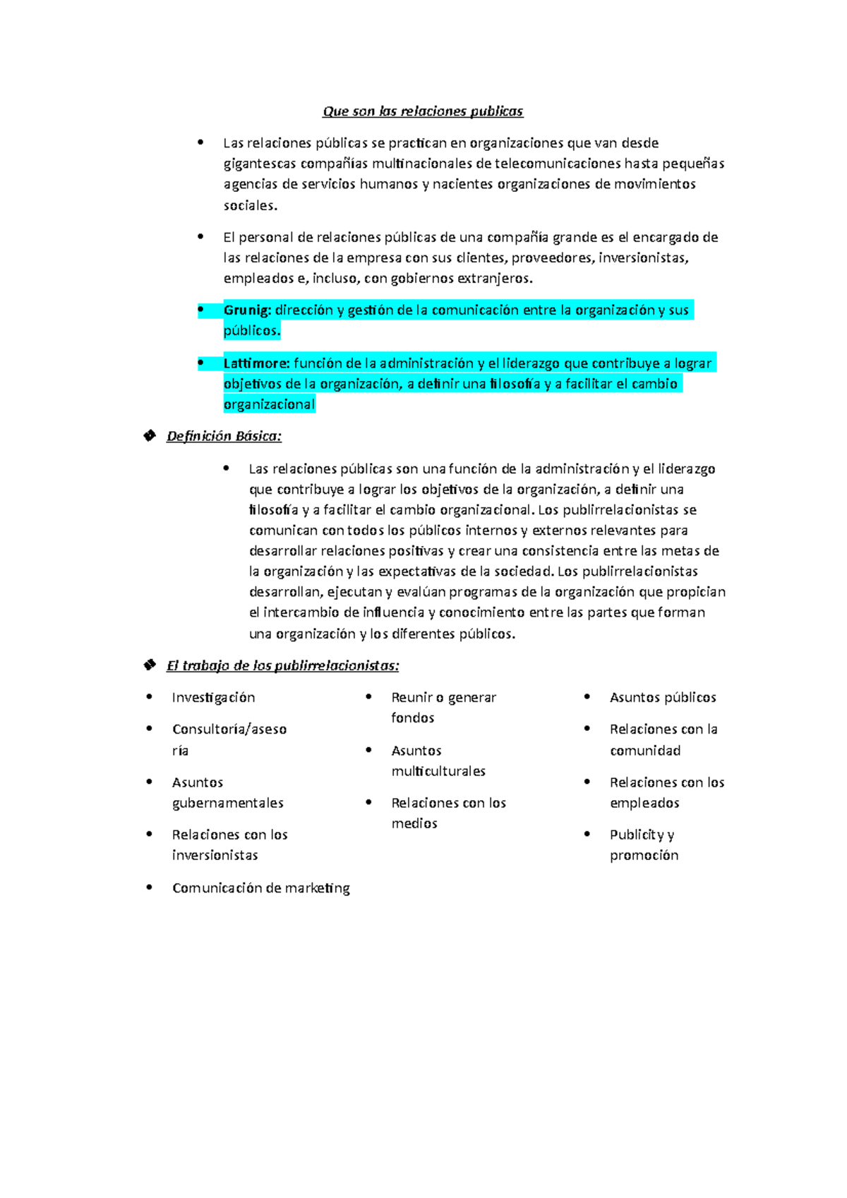 Resumen Unidad 1 RRPP 1 LIBRO DE RELACIONES PUBLICAS JAMES GRUNNING, DAN LATTIMORE, LAMELO