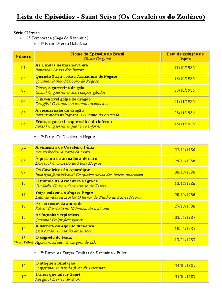 Lista de Episódios de Saint Seiya PDF PDF Natureza
