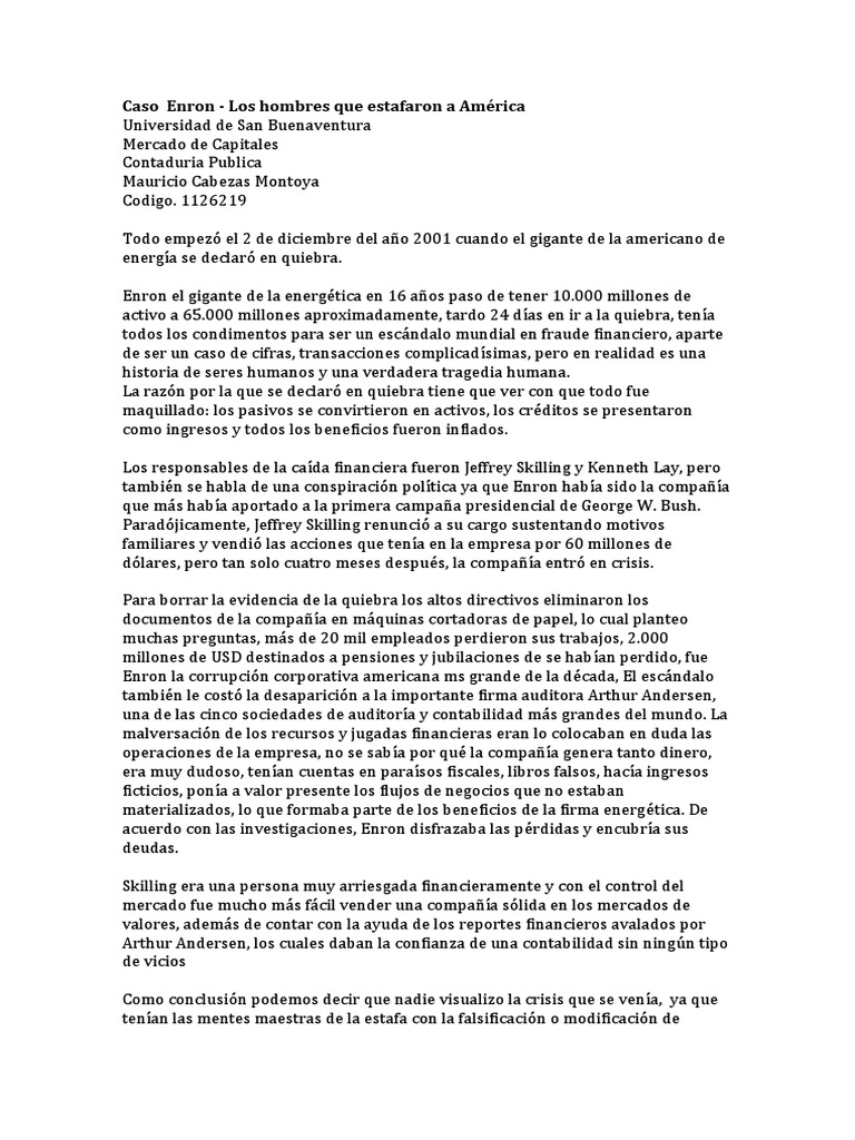 Caso Enron Los Hombres Que Estafaron A America PDF Enron Economias