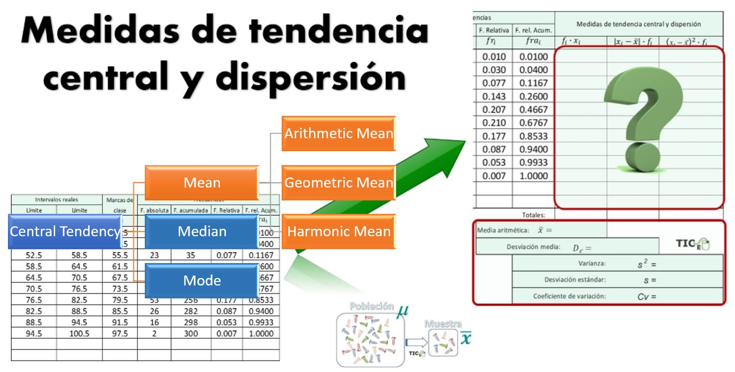 Medidas de tendencia central para datos agrupados: fórmulas, ejercicios. Las medidas de tendencia central señalan el valor alrededor del cual están los datos de una distribución. La más conocida es el promedio o media aritmética, que consiste en sumar todos los valores y dividir el resultado entre el número total de datos. Sin embargo.