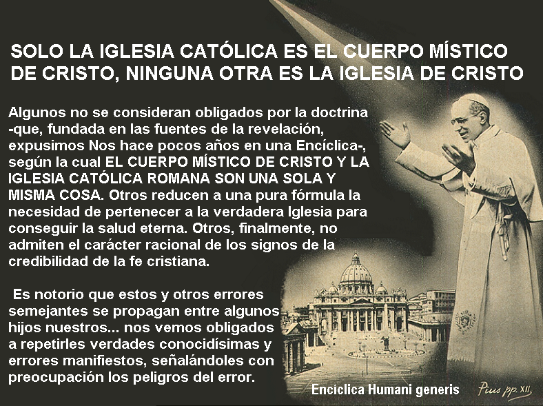 Catolicidad "EL CUERPO MÍSTICO DE CRISTO Y LA IGLESIA CATÓLICA ROMANA SON UNA SOLA Y MISMA COSA