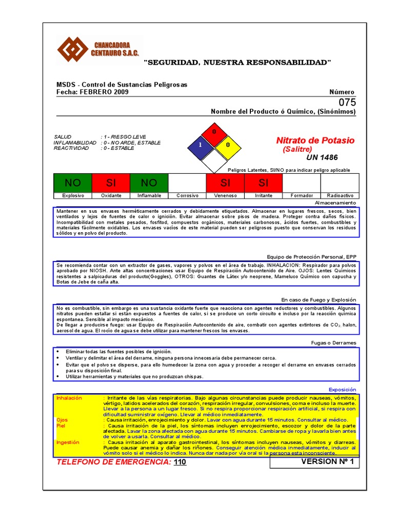 Msds 075 Nitrato de Potasio PDF Nitrato Combustibles