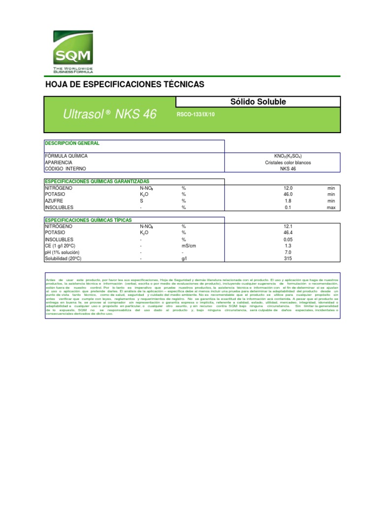 HojaTécnicaNKS46 NITRATO DE POTASIO PDF Química Naturaleza