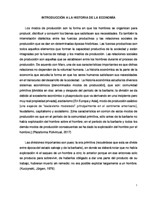 Es una guía para introducirse en conceptos básicos de economía. INTRODUCCIÓN A LA HISTORIA DE LA ECONOMÍA Los modos de producción son la forma en que los hombres se organizan para producir, distribuir y consumir los bienes que satisfacen sus necesidades. Es también la interrelación dialéctica entre las fuerzas productivas y las.