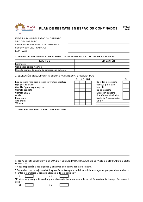 PLAN DE Rescate Trabajos EN Espacios Confinados INGENIERÕA PROYECTOS SERVICIOS