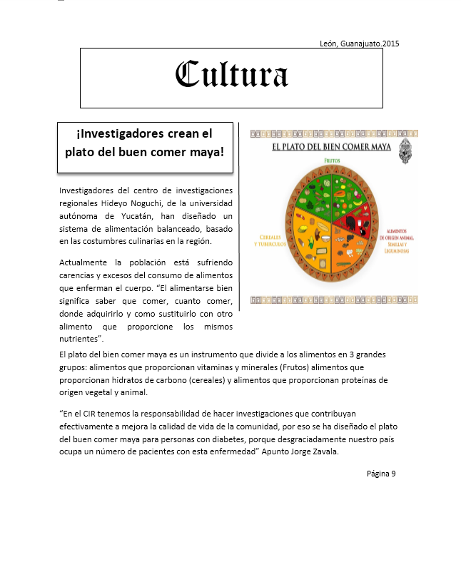 Investigadores de la Facultad de Medicina de la Universidad Autónoma de Yucatán, están realizando esfuerzos por desarrollar herramientas de promoción a la salud acordes con la cultura maya; por ello diseñaron El Plato del Bien Comer Maya, el cual sigue el mismo diseño de El Plato del Bien Comer utilizado a nivel nacional, pero enfatiza en.