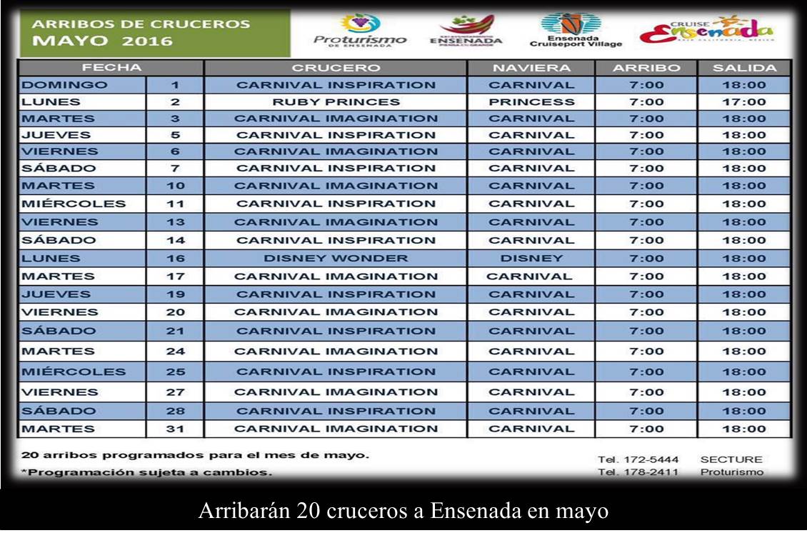 Arribarán 20 cruceros a Ensenada en mayo