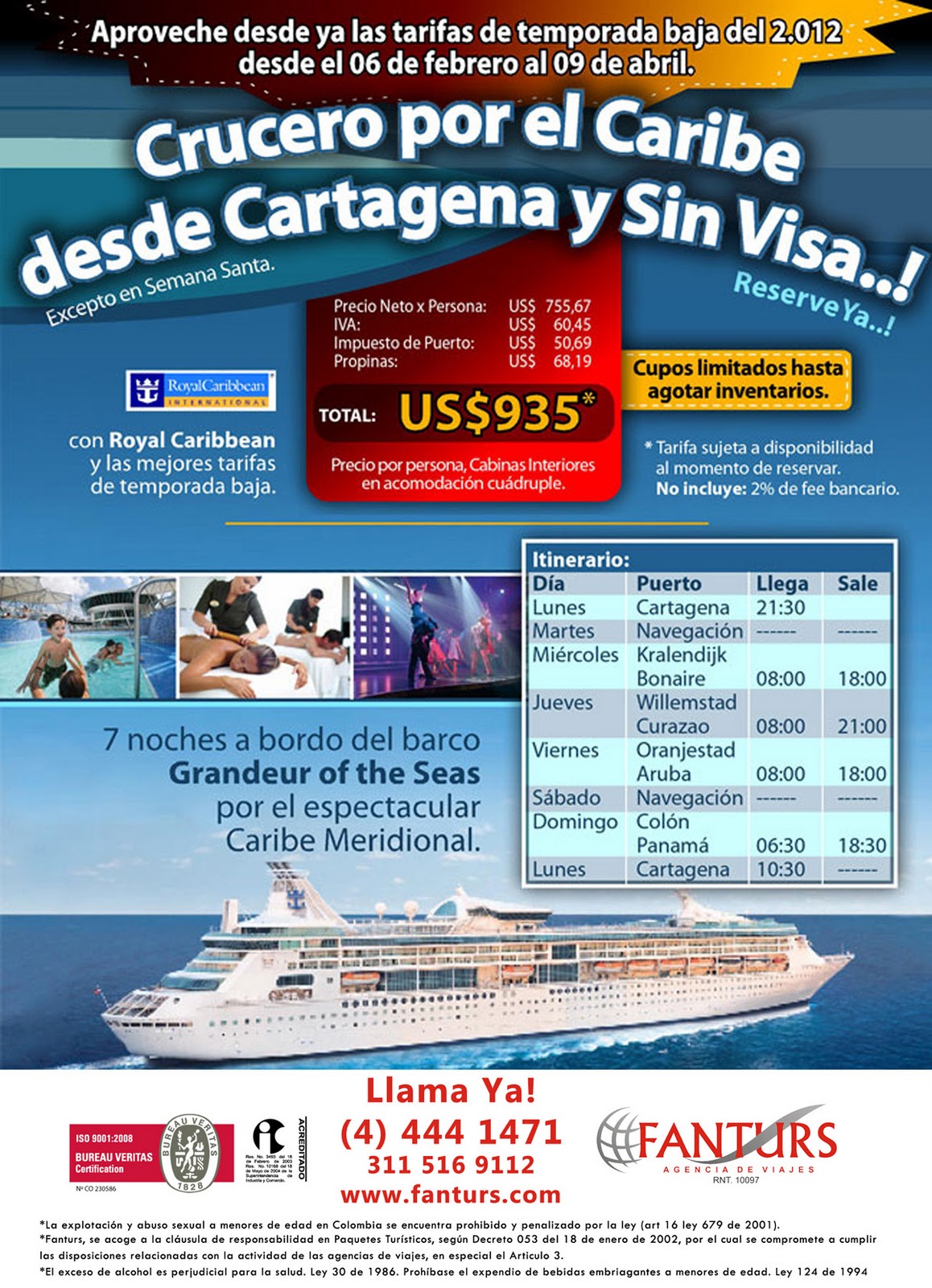 Cruceros Royal Caribbean sin visa desde Mexico Panama Colombia Venezuela