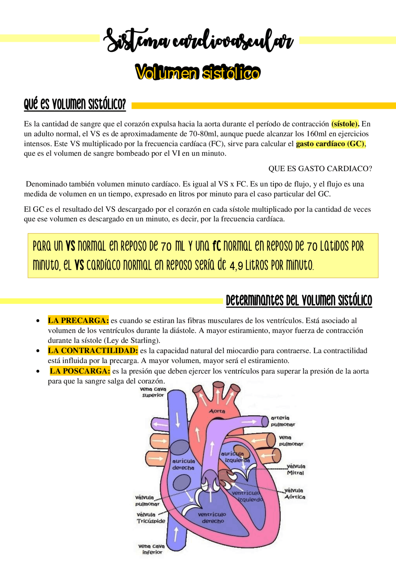 Sistema cardiovascular / volumen sistólico Apuntes de Anatomía Docsity