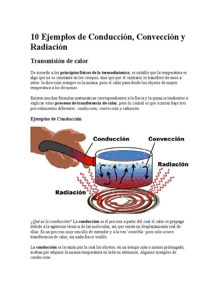 Diego Garcia. hace 4 años. Conducción: transmisión de calor por contacto sin transferencia de materia. Convección: transmisión de calor por la transferencia de la propia materia portadora del calor. Radiación: transmisión de energía por medio de la emisión de ondas electromagnéticas o fotones. Respuesta.