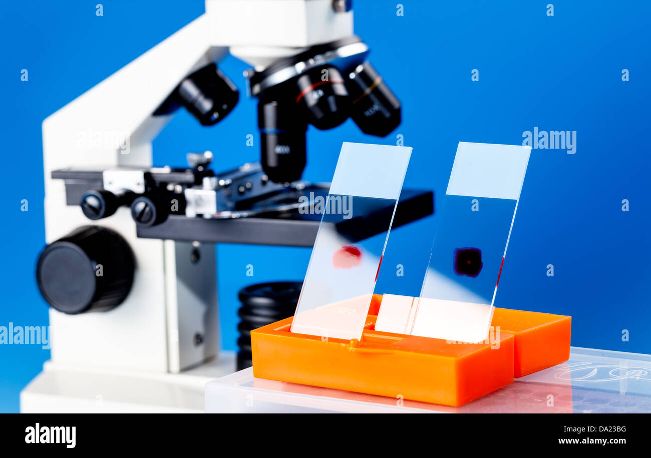 Portaobjetos para microscopios en el laboratorio Fotografía de stock Alamy